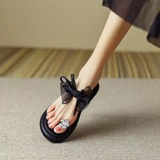 샤넬쪼리 벨루치슈즈 여성 천연가죽 큐빅 4cm 통굽 엄지발가락 보석 쪼리샌들 슬리퍼